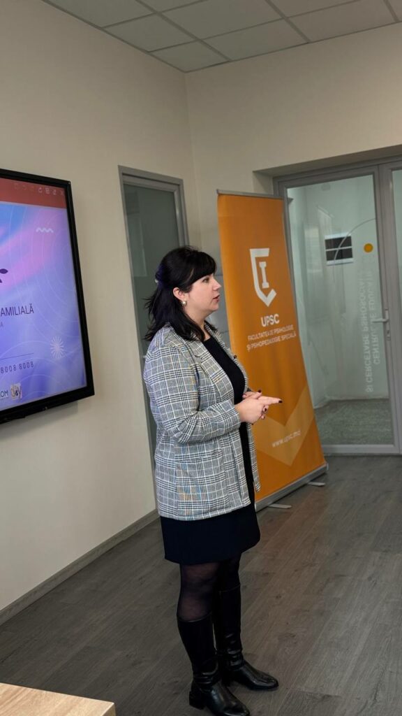 În contextul Campaniei de informare și sensibilizare „Legea adoptată. Siguranța ta!”, angajații Centrului de Justiție Familială al Poliției au desfășurat o amplă activitate de informare și dialog profesional cu studenții programelor de studii Asistență Socială, Psihologie, Psihopedagogie și Psihopedagogie Specială din cadrul Universitatea Pedagogică de Stat „Ion Creangă” din Chișinău.