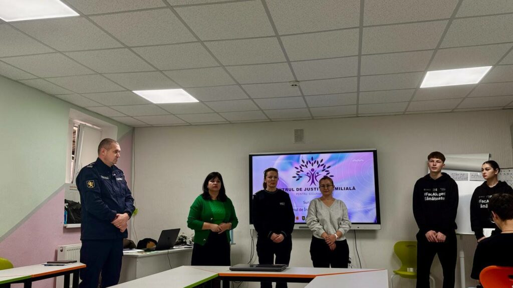 Astăzi, angajații Centrului de Justiție Familială al Poliției, împreună cu colegii din cadrul Inspectoratului de Poliție Ciocana, au desfășurat o activitate de informare și sensibilizare la Școala Profesională din comuna Bubuieci, în contextul „16 Zile de Activism împotriva Violenței în Bază de Gen”