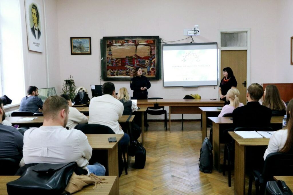 În cadrul întâlnirii, studenții au fost familiarizați cu atribuțiile și rolul Centrului, precum și cu mecanismele de intervenție și serviciile de sprijin disponibile victimelor în condiții de siguranță și confidențialitate.