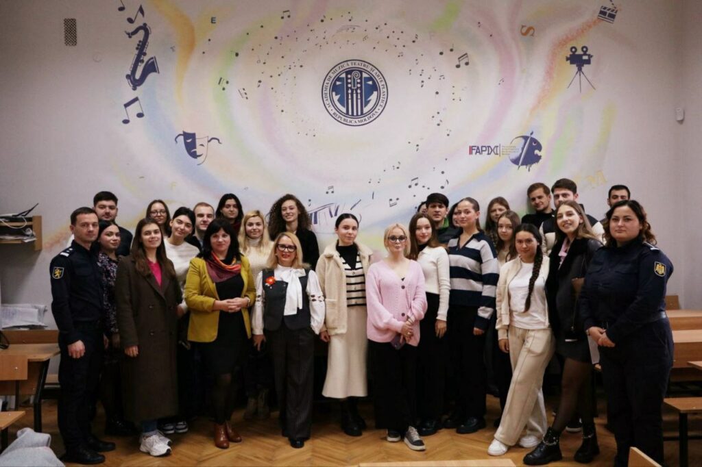 Colegii noștri de la Centrul de Justiție Familială al Poliției și cei ai Serviciul prevenire al Direcției de Poliție Chișinău, au organizat o activitate de informare și sensibilizare pentru studenții Facultății de Artă Teatrală, Coregrafică și Multimedia din cadrul Academiei de Muzică, Teatru și Arte Plastice (AMTAP) din capitală.